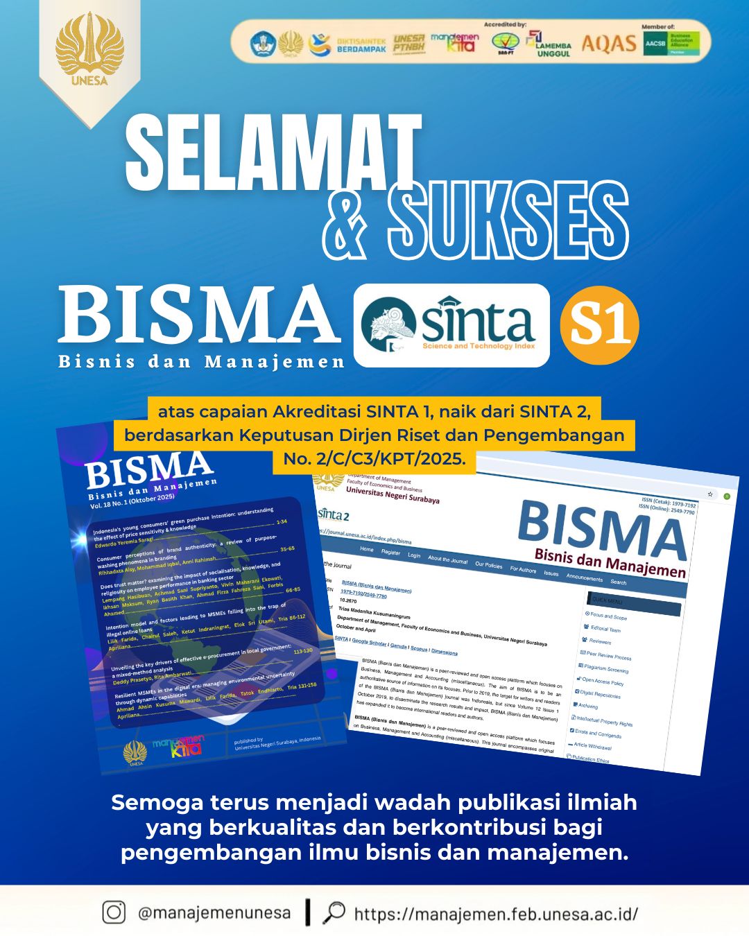 Exciting news comes from the world of scientific publications in the field of business and management. Jurnal BISMA (Business and Management) officially received an in