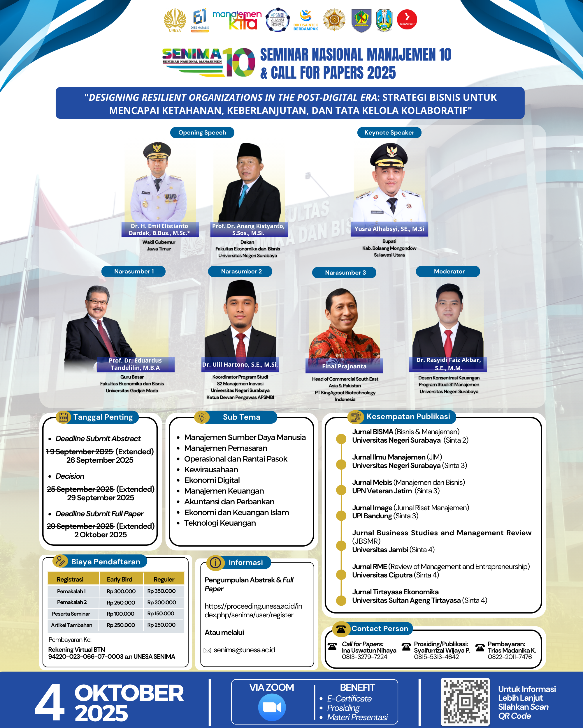 Surabaya, October 4, 2025 – Universitas Negeri Surabaya (UNESA) successfully held the 10th National Management Seminar (SENIMA